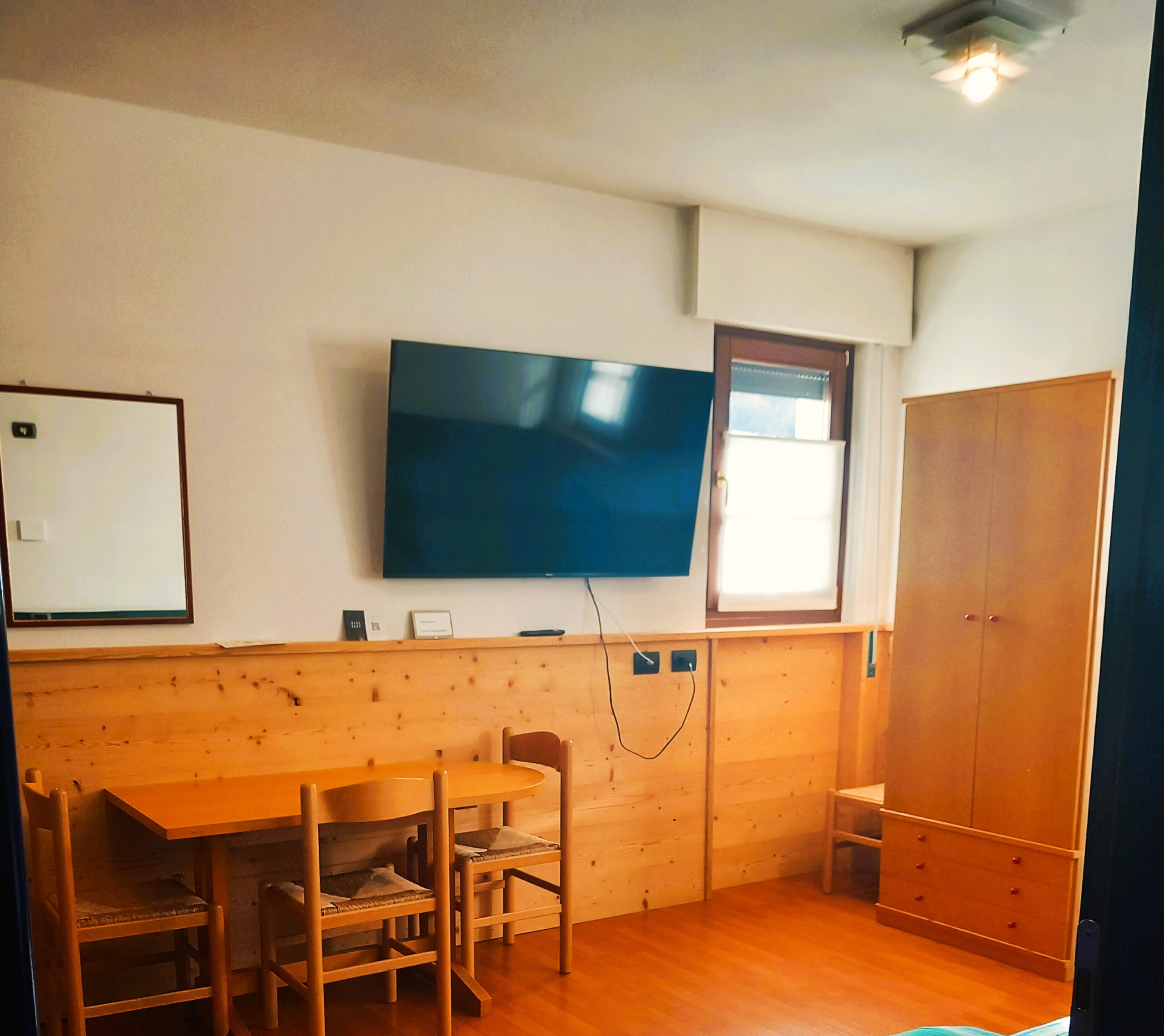 End the day on skis and meet in our TV room to chat, read a book, dabble in board games, letting the warmth of the stove envelop you. Challenge each other to a game of table tennis or table soccer, or carve out a moment for your daily workout in our small but super well-equipped FITNESS ROOM.”